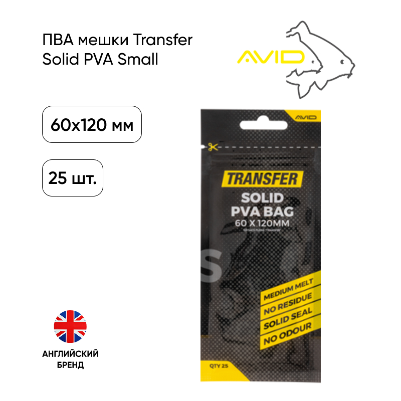 ПВА мешки Avid Carp Transfer Solid PVA 60х120mm Small 25 bags
