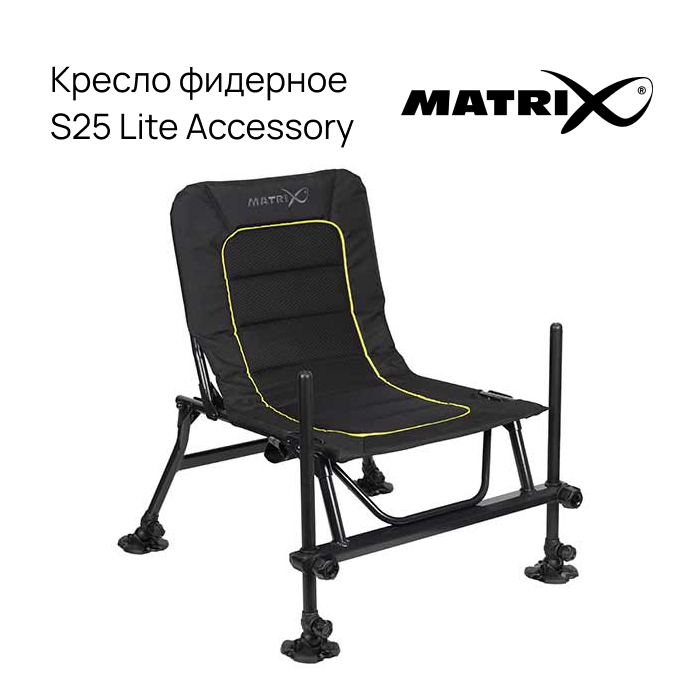 Кресло фидерное Matrix (Матрикс) S25 Lite Accessory Chair разработано для комфортной фидерной и поплавочной ловли, когда важны мобильность и удобство на берегу.
