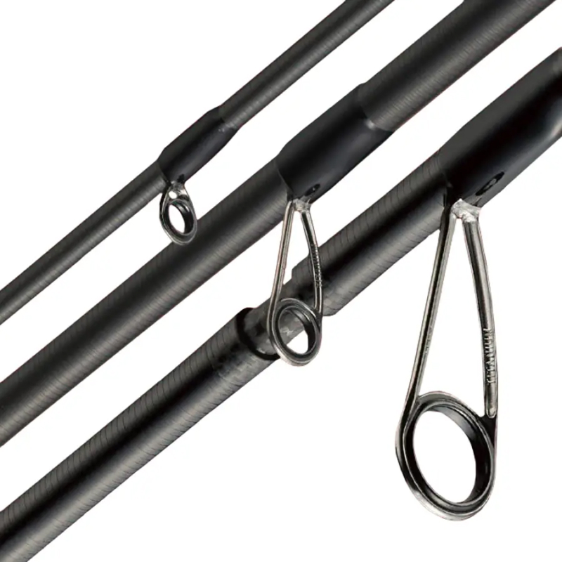 Верхнее пропускное кольцо (тюльпан) – противозахлёстный. От вершинки до комля установлена комбинация титановых колец K-Guide и RV-Guide, которые обеспечивают идеальное скольжение лески или шнура. Два кольца со стороны комля имеют двойные ножки, что снижает проблемы при забросе с более толстыми шнурами . Кроме того, использование колец Torzite позволяет добиться наименьшего веса, подавления вибраций и повышенной чувствительности. Намеренно избегая уменьшения размера и увеличивая внутренний диаметр, кольца обеспечивают преимущество в дальности заброса. (Только верхний тюльпан со вставкой SiC).
