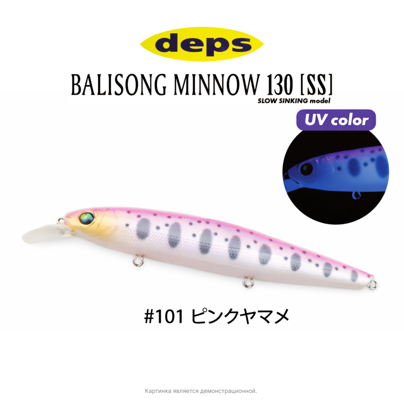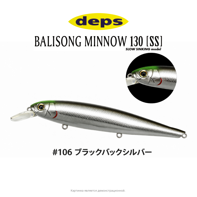 Deps Balisong Minnow 130SS (Депс Балисонг Минноу) — воблер класса minnow с медленным погружением (Slow Sinking), разработанный для ловли хищника на различных горизонтах. Обладает стабильной игрой, отлично держит струю и эффективно работает как на равномерной проводке, так и при твичинге. Реалистичная форма и привлекательные цвета провоцируют даже пассивную рыбу. Подходит для ловли щуки, судака и крупного окуня.