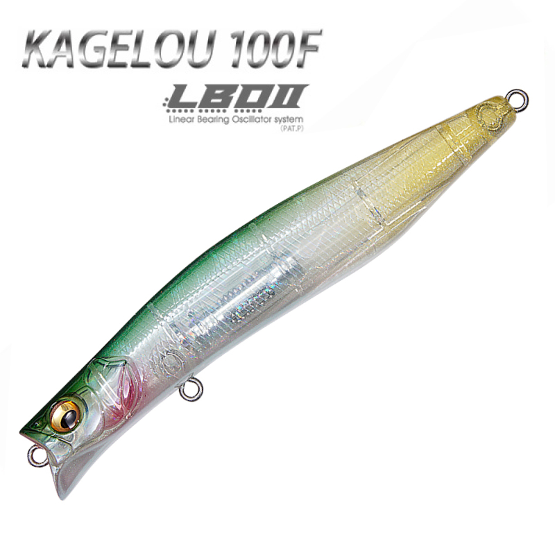Модель способна погружаться на глубину до полуметра и вверх устремляется в анимации на паузе. Главной особенностью воблера Megabass Kagelou является система дальнего заброса с капсулой внутри и микроподшипниками (LBOII), которая необходима для заброса приманки в заданную точку. Помогает приманке демонстрировать стабильную игру сразу после приводнения.