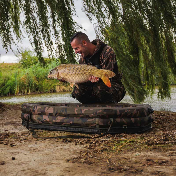 Надувной карповый мат овальной формы, разработанный для максимальной защиты рыбы во время освобождения от крючка и фотосъёмки. Внешний материал выполнен из прочного полиэстера 210D в фирменном камуфляже Fox, устойчивого к влаге и износу.